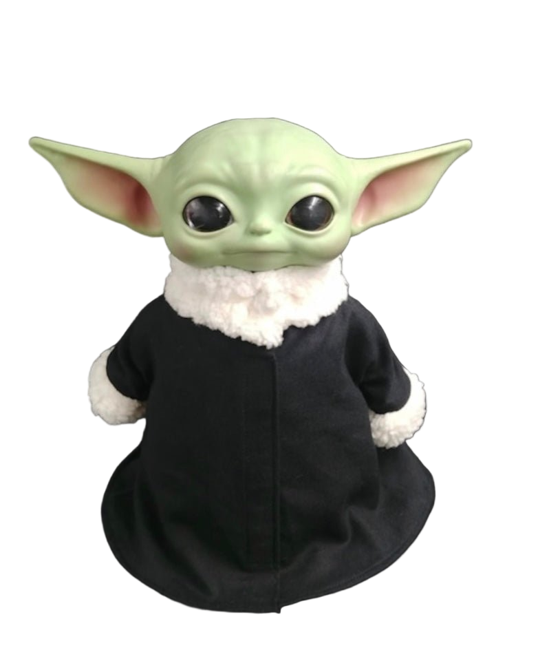 Solid black cotton with white faux fur trim. 11 inch size